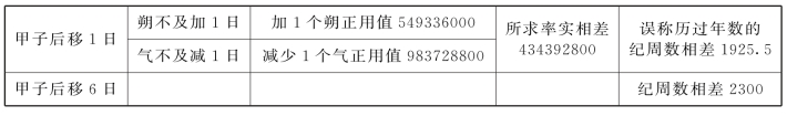 衍母2087476800除以纪元法225600,则是9253。由于1925.5×6-9253=2300(不足减的,加上9253再减),导致表中数据,甲子日每移动六日,相差2300。