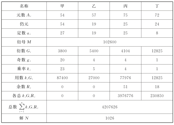 本题未归纳术名。元数与仍元这两词,摘自秦九韶的原算草图的图1和图2。
