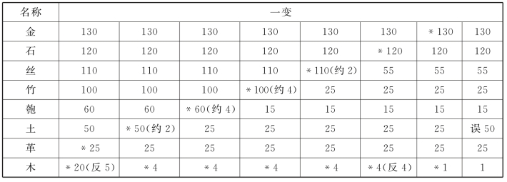 多达八个问数的化约,十分繁复。这里采用八音为号,从大到小,顺序排列。