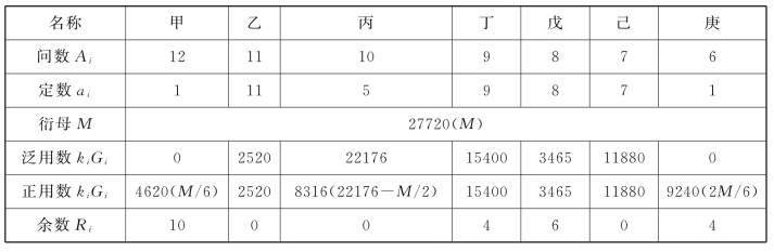 甲、庚衍数27720,与衍母27720相同,称无衍数,记为0。奇数与衍数相乘,称无用数,也记为0。