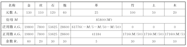 用数乘余数,求总数时,我们不考虑金、丝、石、匏四项,只看移动相关的革、竹、土、木四项。61776扣除17160(M/5)得44616,再扣除两个1716(M/50)得41184。
