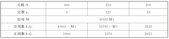 “以乘率对乘衍数(算草)”,得甲4000,乙5376和丙2625,称泛用数。“并三泛,得一万二千〇〇一,乃多衍母一倍,当半衍母六千得三千(算草)。”3000是假衍母6000之半。消甲4000,余1000。又消乙5376,余2376。丙不消。得到真的定用数。