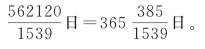 (3)写日换分算法。1章19岁7闰235历月,月分2392分。1章2392×235=562120分。写日换分,成为562120日。分摊到1539岁,岁实