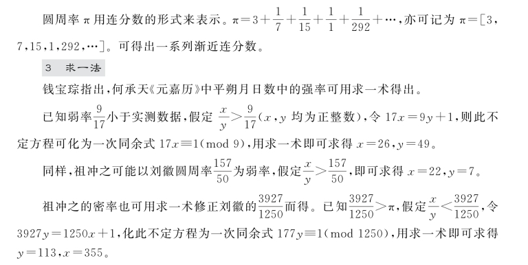 吕子方在20世纪50年代通过对汉代历法五星周期会合周期的研究,提出世纪之初,人们已经使用了连分数。