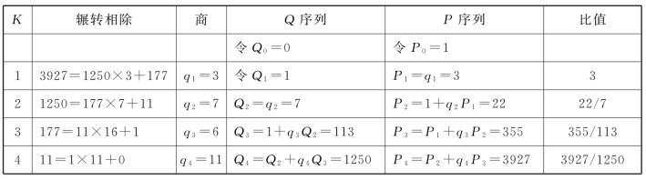 我们赞成查有梁对连分数的推测,只是改用了序列值计算表(表17.7):