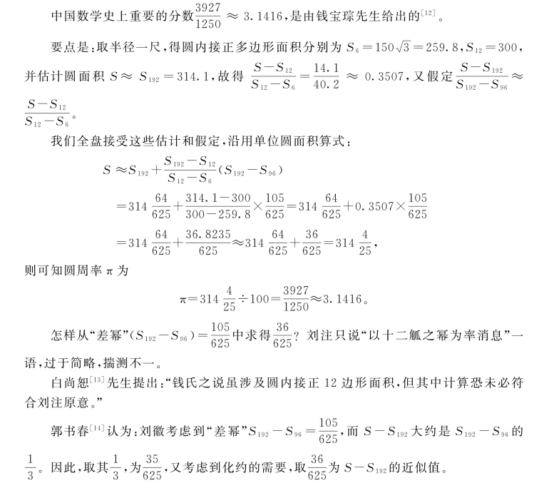 此外,历代《九章算术》注只记载了应用割圆术到正3072边形。