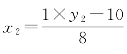第5次除法为余数0,没有引入新变量,整理成8x2=1×y2-10,也是降系数不定方程。