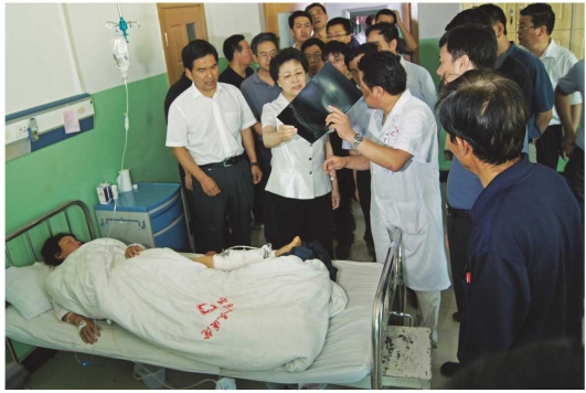 2013年7月22日,陇南市委副书记、市长陈青看望岷县“7·22”地震宕昌灾区受伤住院群众。