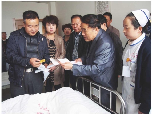 2013年7月23日,民政部副部长姜力在陇南市委书记孙雪涛的陪同下看望岷县“7·22”地震宕昌灾区受伤住院群众。