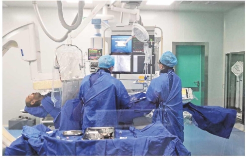 宕昌县人民医院导管室心脏冠状动脉支架植入术现场。