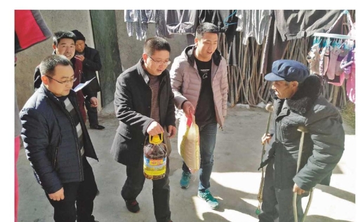 宕昌县人民医院帮扶责任人慰问贾河乡大竹河村五保户。