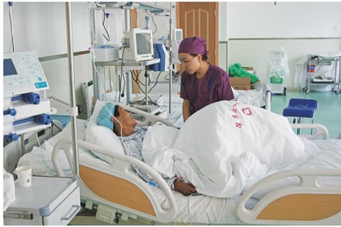 宕昌县人民医院重症医学科护士精心护理重症患者。