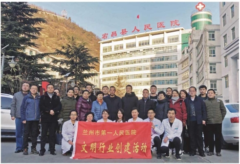 兰州市第一人民医院院长丁延虹在县医院对接文明行业创建工作。