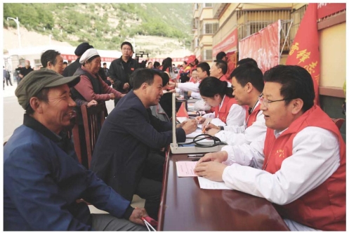 宕昌县人民医院医务工作者赴山背罗湾易地搬迁点进行义诊。