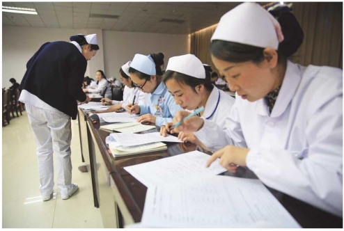 宕昌县人民医院感控陇源行活动培训考试现场。