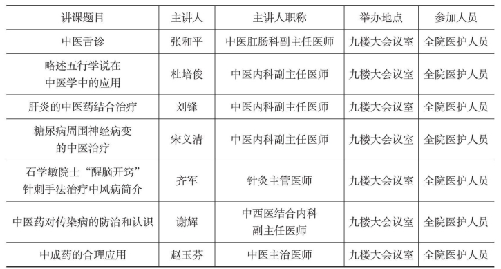 加强了西医科室的中医治疗,考核了西医临床科室中药消耗量和中医治疗人次及康复治疗量,邀请西医会诊查房,逐步建立了西医科室与中医科室的协作机制。