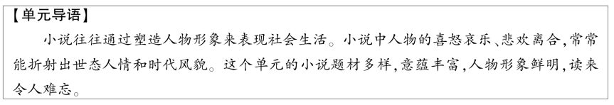 同学们想将本文与课本九年级下册第二单元组合成一个大单元进行学习,请你结合教材的“单元目录”和“单元导语”,表述你对多篇文本合并阅读的思考。(8分)