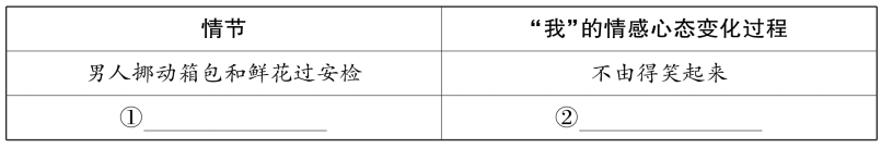 根据情节的发展,以及“我”的情感心态变化过程,填写下面表格的内容。(4分)