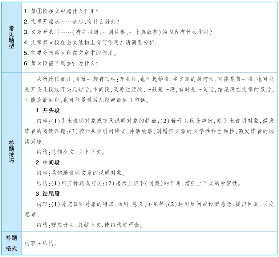 分析某段在文中的作用,就是分析关键段落在文章结构、内容中承担的作用,主要从内容和结构两方面来考虑。