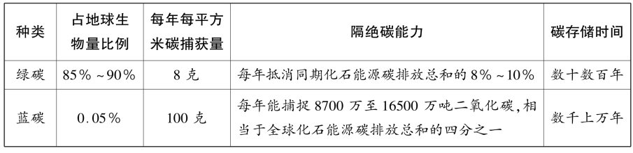 ①近年来,“双碳”观念深入人心,“绿碳”和“蓝碳”也逐渐从概念走向行动。