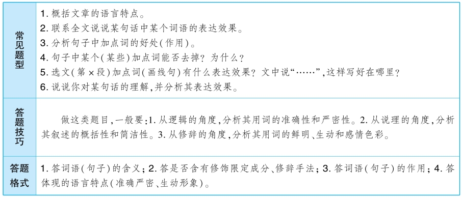 议论文的语言特点主要表现在准确严密性、生动形象性、鲜明性和概括性四个方面。准确严密性体现在概念使用准确,状语、定语等修饰成分恰当,判断推理严密,逻辑性强;生动形象性体现在修辞手法的运用、诗句的引用、句式的变化等方面;鲜明性体现在表述明确,态度明确,不模棱两可;概括性体现在用高度凝练的语言来总结抽象的道理,不说套话、空话,以理服人,力求言简意赅。