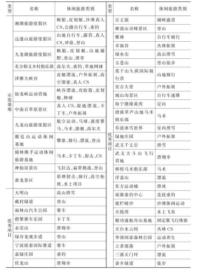 表2-9 浙江省运动休闲旅游示范基地、优秀项目
