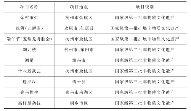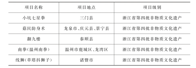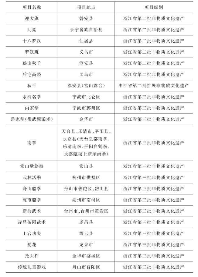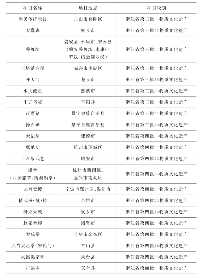 表2-14 浙江省传统体育休闲项目列入浙江省级非物质文化遗产项目
