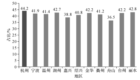 图3-1 2018年浙江省各市经常参加体育锻炼人数比例