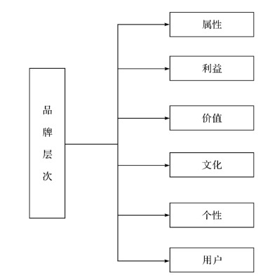 其中属性是最基本的层次,代表着品牌的本质含义,决定着品牌的内涵。利益是对于顾客而言,产品本身能够满足其功能性或情感性利益,进而主动购买或参与消费。价值是品牌本身包含的、向消费者传递的价值观或消费观。文化是品牌的内涵升华,蕴含民族文化、产业文化、企业文化等等。个性是品牌区别于其他同类产品的表现。用户则是品牌的目标市场,品牌的购买力量。