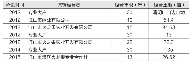 首先,土地经营主体的多样化。土地流转不再限于同一集体经济组织内的农户之间,而是允许清漾村民与外来经济组织之间的流转。由此出现了一批家庭农场、农业专业大户、现代农业企业等新型农业经营主体,促进了土地流转经营主体的多元化。