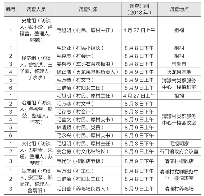 在研究过程中,课题组针对调查中的缺漏和研究中产生的新问题,还采取了电话访谈、微信交流等多种方式进行了调查。比如,课题组成员通过电话访谈了清漾村驻村干事毛雨龙、毛旭明等,通过微信访谈了毛友进、毛友刚、毛伟、毛英俊等清漾乡贤或乡贤家属,通过微信追踪访谈了清漾村历任党支部书记。