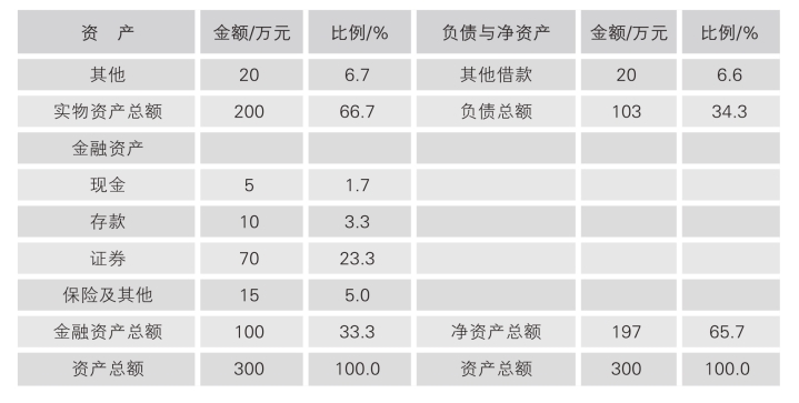 通过比较家庭资产负债表(见表1-1)和国内净资产的构成(见表1-2),我们可以发现实物资产和金融资产之间存在着明显的区别。家庭财富包括银行存款、企业股票和债券等金融资产。这些证券一方面构成家庭的金融资产,另一方面又形成发行者的负债。例如一张中国石油的债券,对投资者而言是一项资产,因为它代表了投资者对债券本金和利息的索取权,但是对中国石油而言却是一项负债,因为它意味着中国石油有偿还本息的义务。因此,当我们汇总家庭与企业所有的资产与负债时,金融资产与金融负债相互抵销,仅剩下实物资产作为财富净值。