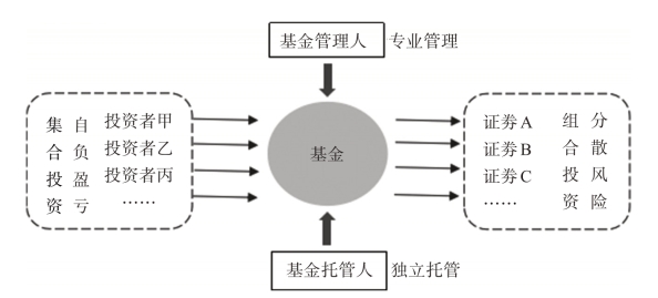 基金是指通过发售基金份额,将众多投资者的资金集中起来,形成独立财产,由基金托管人托管、基金管理人管理,以投资组合的方法进行证券投资的一种利益共享、风险共担的集合投资方法。具体如图2-1所示。