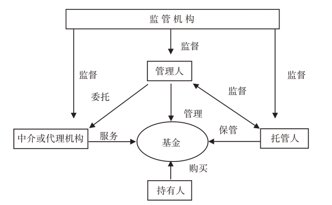 我国的证券投资基金是契约型基金,其运作关系与公司型基金有所不同。契约型基金的运作关系可用图2-2描述。