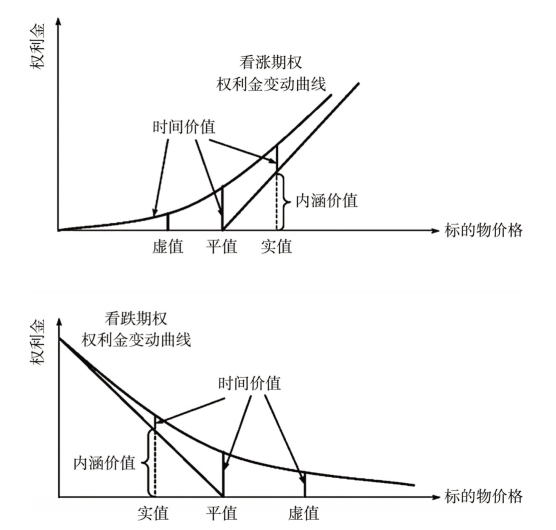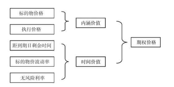 期权价格主要由内涵价值、时间价值两部分组成,具体如图2-3所示。