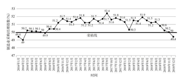 从图5-1可以看到,我国从2018年年中开始,PMI指数一路向下,11月刚好是50%,12月已经跌至荣枯线以下,表明经济有所衰退。经济下行期资产配置的重点是选抗风险能力强的产品,投资以稳健为主即可。