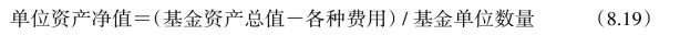 基金资产净值是基金经营业绩的指示器,也是基金在发行期限到期后基金单位买卖价格的计算依据,基金的资产净值可用下面的公式来表示:
