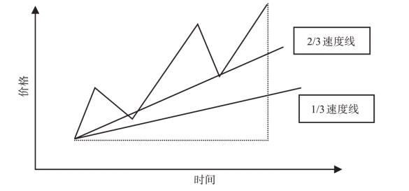 速度线是一种将趋势线和百分比回撤融为一体的新技巧,速度阻挡线(或称速度线)是测绘趋势上升或下降的速率(或者说是趋势的速度)。它是由埃德森·古尔德开创的。