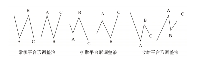 调整浪可以分为多种类型:锯齿形、三角形、平台形、双三形、三三形和半月形。下面对前三种调整浪进行介绍。