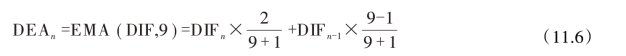 DEA是Difference Exponential Average的缩写,称为异同平均数。和EMA的计算公式一样,对DIF的平滑得到DEA。DEA的参数通常选择9。DEA的计算公式为: