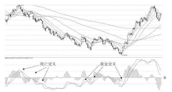 图11-8 平滑异同移动平均线指标金叉与死叉运用情形