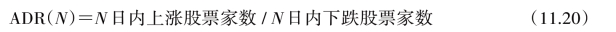 选择几天的股票上涨和下降家数的总和,而不是一天的上升和下降家数,目的是避免某一天的特殊表现而误导我们的判断。参数N究竟选何值,没有一定的规定,完全由人为操纵;不过参数选择得是否合适是很重要的,选得过大或过小都会影响ADR的作用。目前,比较流行的是选择参数为14。ADR还可以选择别的参数,如5、25等。