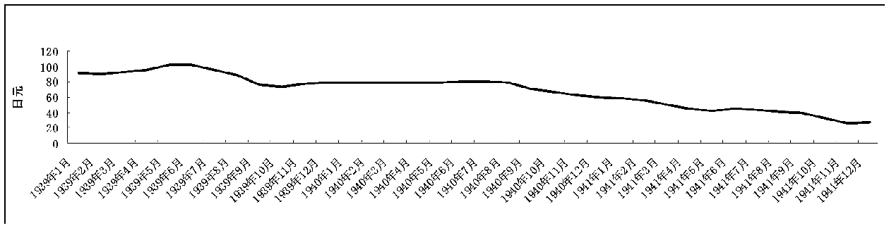 说明:1939年12月前为法币100元兑日币金额数,此后为法币100元兑军票金额数。