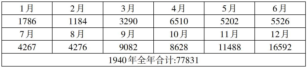 随着功能的增强,军票逐步融入日商纱厂产品交易之中。在华中军票“一元化”政策实施前夕,日本军政当局即要求纱厂“对于流向汉口等内地的棉产品以军票结算,且在其他产品及棉花的货款中使用二成的军票”。(48) 由于军票自身购买力提高,正如财务官相马敏夫所指出的,即使日商纱厂反对将产品全部以军票交易,但“如今也需出于成本考虑,渐至实现以军票交易的层面,若这一层面达到相当程度,以军票进行产品交易当然无任何异议”;(49) 同时纱厂也不得不逐步增加产品的军票交易数额以满足日军的要求。(50) 以1940年为例,可以分析上海日商纱厂产品军票销售额的变动情况。见表5-1。