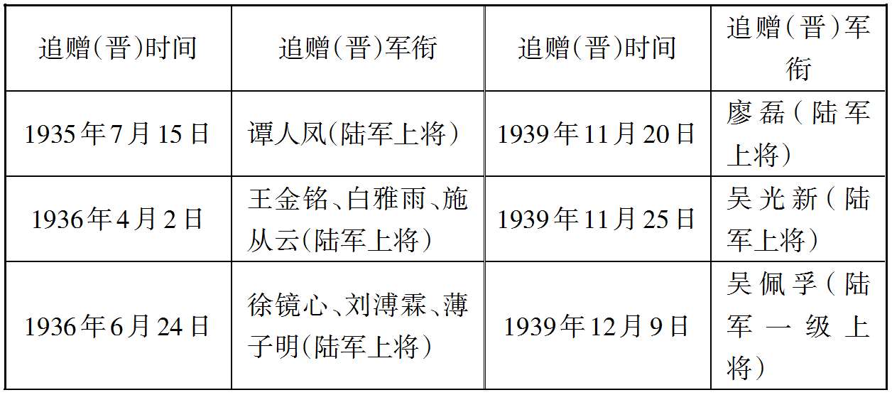 表1-9 1935—1945年国民政府追赠、追晋上将统计表
