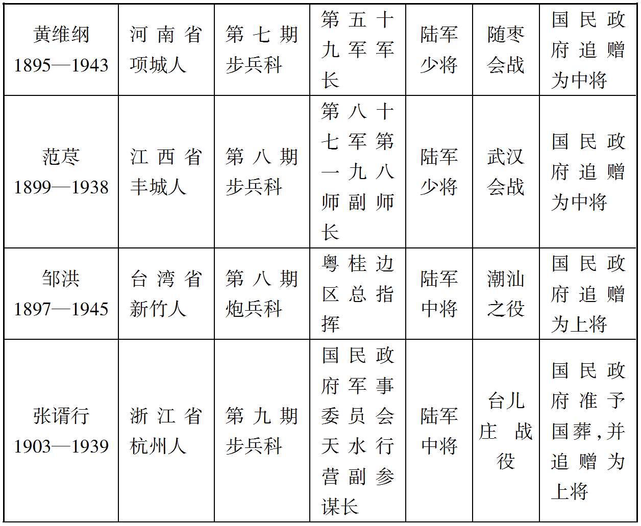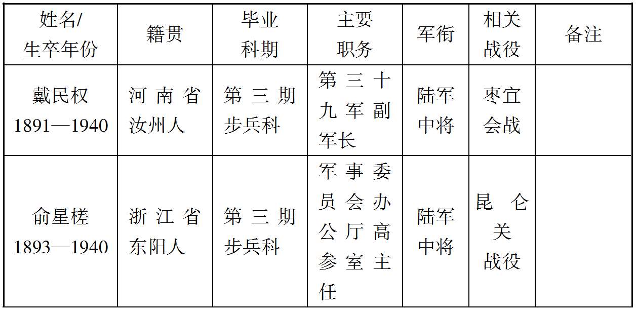 表2-2 抗战时期牺牲的保定军校毕业生将领统计表