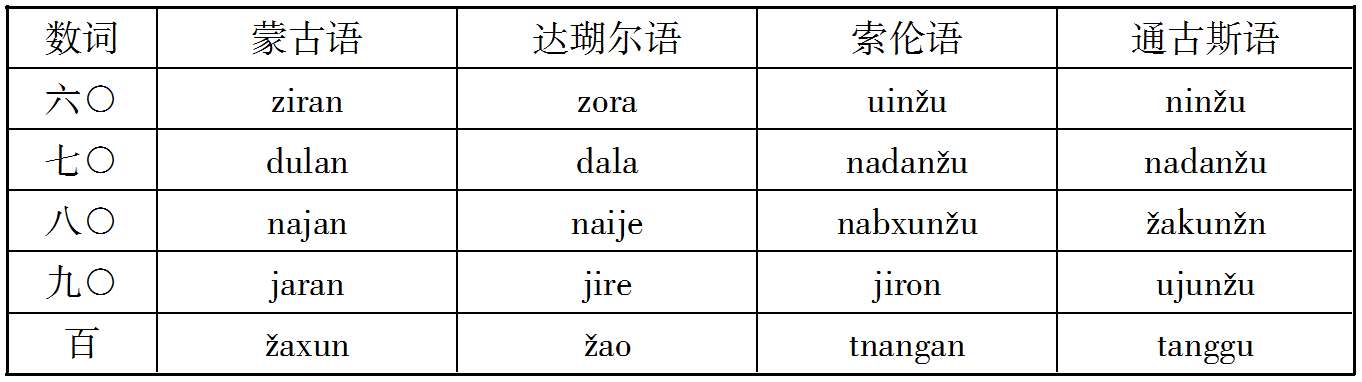 契丹语之可与通古斯语比较者: