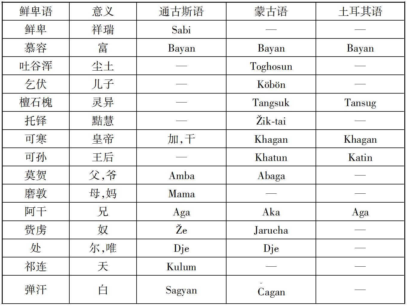 案上述十八语中,可以蒙古语比拟者得十五语,可以通古斯语比拟者得十一语,而可以土耳其语比拟者则仅七语,故白鸟库吉氏遂据此以为鲜卑民族属今蒙古种及通古斯种之混合种之证也。