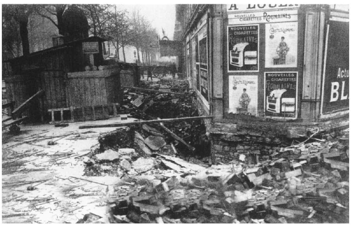 巴黎市突如其来的黑暗让人们回想起普法战争期间被围困的可怕经历,当时由于燃料供应不足,城市的灯光暗淡。到了1870年11月底,几乎每个家庭都被切断了燃气供应。被围困的巴黎一片寂静,作家泰奥菲尔·戈蒂耶 (Théophile Gautier)曾这样描述他走在塞纳河边时的感受:“沿着河岸,是死一般的寂静,是可怕的静默……街道上的路灯只有一半的气压,只能在黑暗中露出暗红的小点,这些微弱的红光反射到河里,光影被拉长,像血滴一样,在河里慢慢晕开。” (4) 这些句子虽然是在1870年写的,但40年后依然可以用来描写洪水围困下的巴黎。