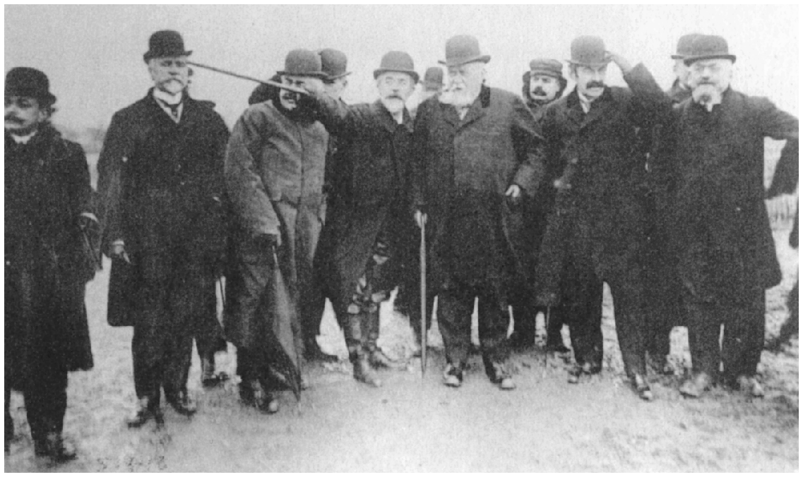 在这次大洪水中,政府领导积极走到抗洪第一线安慰和救助巴黎市民。图为警察局长路易·雷平用他的手杖指给阿尔芒·法利埃总统看洪涝造成的损害 (1)